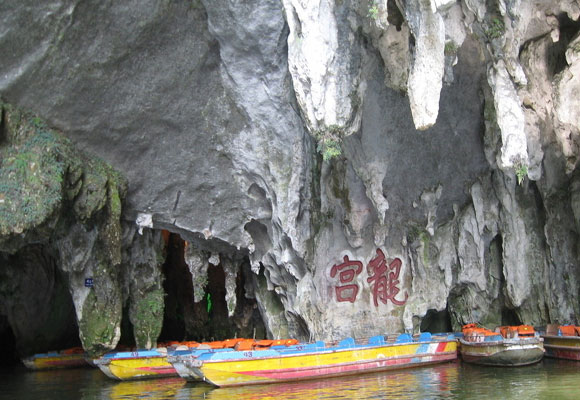 午飯后我們繼續(xù)旅程,經(jīng)過自渡津(需要自已拉船過渡),我們就到了龍宮景區(qū)。等了約半個(gè)多小時(shí)后(需湊滿8個(gè)人一船),我們乘船穿過一條500多米的人工修整過的隧道后(據(jù)說在沒通隧道前需翻山走二小時(shí)),換乘另一條船游龍宮。龍宮是一條長(zhǎng)約1000多米的地下積水溶洞,由5個(gè)大小不同的廳,布置有一些燈光,隨船導(dǎo)游講一些耳熟能詳?shù)?ldquo;經(jīng)典”導(dǎo)游段子,如九龍戲水、八戒迎親什么的。