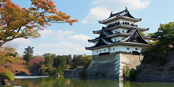 【大阪城公園】(停留約 30 分鐘)豐臣秀吉于 1583 年所建 ,是由雄偉的石墻砌造而成 ,大阪城公園內城 中央聳立著大阪城的主體建筑天守閣 ,鑲銅鍍金 ,十分壯觀。 附近有風景秀麗的庭園和亭臺樓閣 ,奇花異 卉 ,滿目青翠 ,充滿詩情畫意。