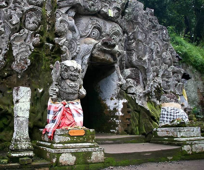 參觀象窟(Visit Goa Gajah Bedulu's Elephant Cave) 是巴厘島南部地區(qū)最著名的一項觀光項目。象洞是一個洞穴,與大象無關(guān)。除了洞穴外還有利用山體巖石雕塑的石像,洞內(nèi)雕有栩栩如生的神像。洞外有三個露天浴池,還有寺廟、石雕和亭閣。在入洞口的上方雕刻有面容猙獰的巨型守護(hù)神雕像。象洞是在1923年由考古學(xué)家發(fā)現(xiàn)的,原先他們想通過這個洞穴尋找大象的蹤跡-象洞的命名由此而來。象洞內(nèi)光線很暗– 進(jìn)洞時最好帶一只手電筒。在象洞的左邊是一個象頭神和濕顯婆神兒子的雕像。洞的右側(cè)有三個男性生殖器的圖騰(直立的石柱)。在每一個石柱的旁邊各有一個象征女性生殖器的小圖騰。